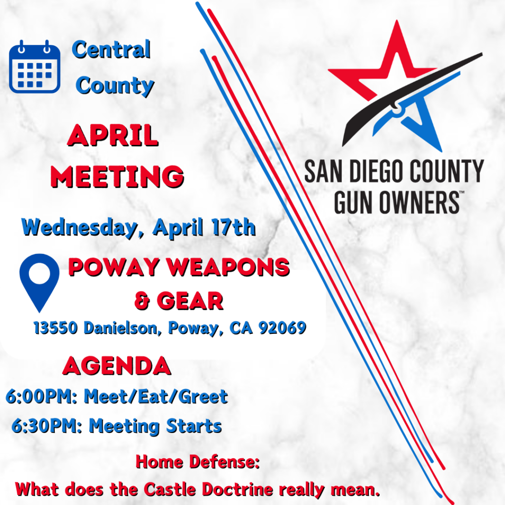 "The only organization in San Diego that stands up to the 18 local city and county of San Diego councils for our right to keep guns legally in our homes. Please support your rights locally by supporting these fine folks."